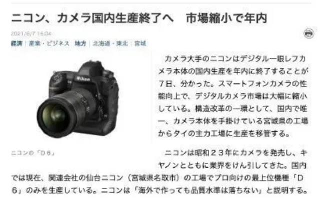 【环球网科技综合报道】6月8日消息,据日媒日前报道称,随着智能手机摄像头的性能提升,数码相机市场大幅萎缩。作为结构性改革的一环,尼康将于年内结束在日本国内生产数码单反相机机身。资料显示,此前,尼康公司...