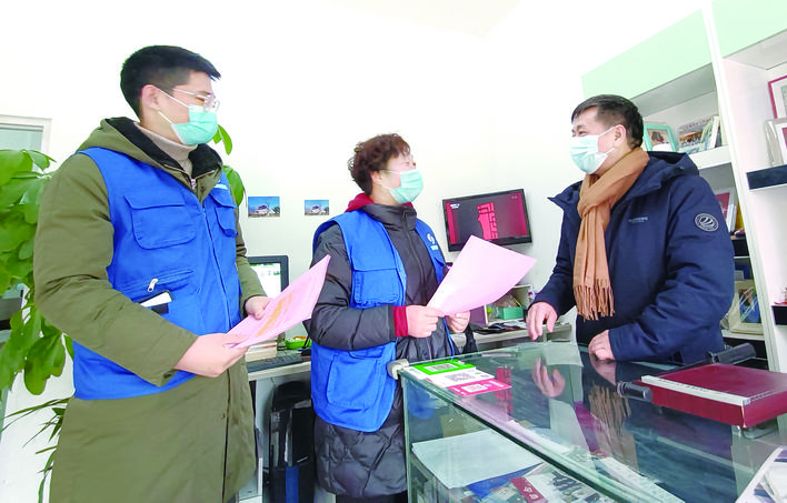 连日来,淮阴区加强辖区人员网格化管理,重点做好返乡人员、外来人员等重点人群的信息登记、摸排、隔离等健康管理服务,有序推进疫情防控工作。图为王家营街道营中社区工作人员深入沿街店铺登记外来人员信息。通讯员...