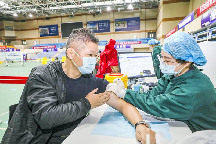 昨日,市民在集中接种点有序接种新冠病毒疫苗“加强针”。全程接种疫苗满6个月的18周岁及以上人群,可携带身份证、接种凭证在接种点免费接种“加强针”,进一步加固免疫屏障。融媒体记者 赵启瑞 通讯员 丁华珍...